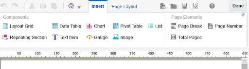 Step 9: In the report editor, click on the “insert” tab, then drag and drop “Data Table” to the sheet. This will create a table area where you can place the columns.